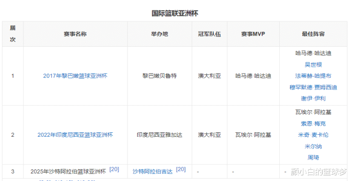 过去两届亚洲杯澳大利亚都是冠军,澳大利亚本次亚洲杯大概率要冲击三连冠了,因为澳大利亚有多位NBA现役球员,这一点是亚洲各队都不具备的。